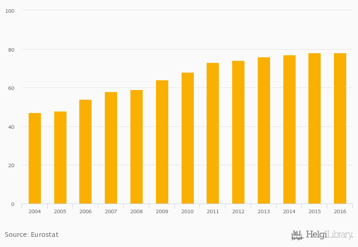 | Slovakia | % | ... | ... | ... | ... | ... | ... | ... | ... | 67.0% | 71.0% | 75.0% | 78.0% | 78.0% | ||||||||