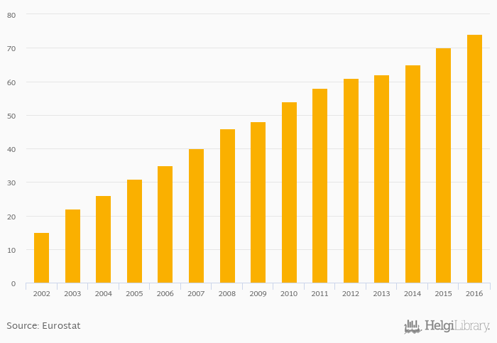| Spain | % | ... | ... | ... | ... | ... | ... | ... | 58.0% | 63.0% | 67.0% | 70.0% | 74.0% | |||||||||
