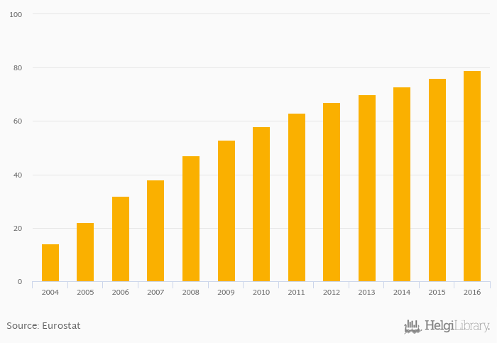 | Slovakia | % | ... | ... | ... | ... | ... | ... | ... | ... | 67.0% | 71.0% | 75.0% | 78.0% | 78.0% | ||||||||