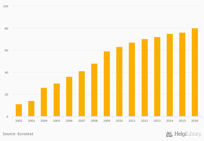 | Slovakia | % | ... | ... | ... | ... | ... | ... | ... | ... | 67.0% | 71.0% | 75.0% | 78.0% | 78.0% | ||||||||
