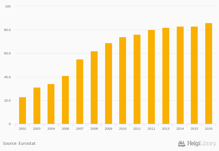 | Belgium | % | ... | ... | ... | ... | ... | ... | ... | ... | ... | 73.0% | 77.0% | 78.0% | 80.0% | 83.0% | |||||||