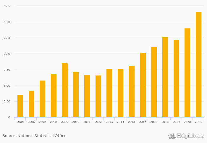 Historically, number of households with mortgage loans as a percentage of total households in Lithuania reached an all time high of 16.6% in 2021 and an all time low of 3.60% in 2005.