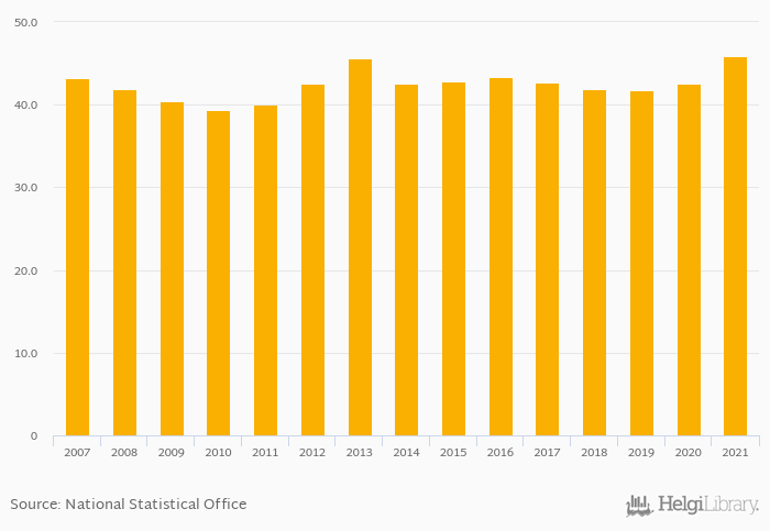 | Luxembourg | % | ... | ... | ... | ... | ... | 43.3% | 42.7% | 41.9% | 41.8% | 42.6% | ... | ||||||||||