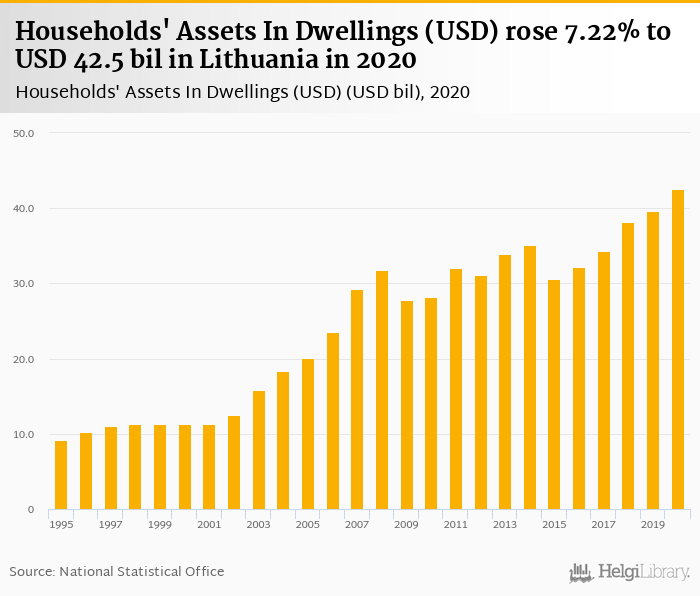 Households' assets in dwellings rose 7.22% to USD 42.5 bil in Lithuania in 2020, according to OECD.