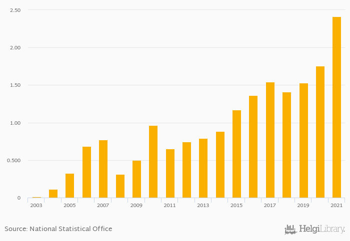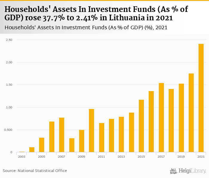 Households' assets in investment funds as of GDP rose 37.7% to 2.41% in Lithuania in 2021, according to OECD.