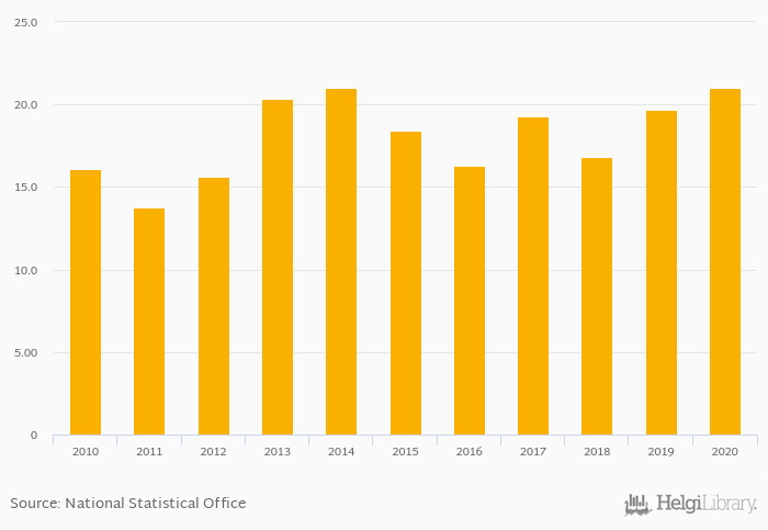 Historically, households' assets in investment funds as of GDP in Israel reached an all time high of 21.0% in 2020 and an all time low of 13.8% in 2011.