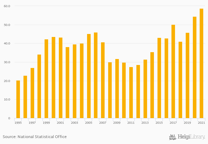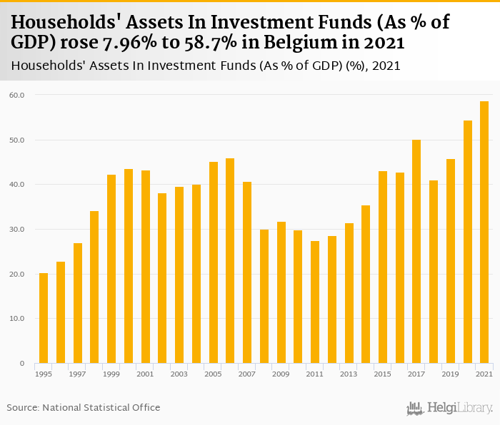 Households' assets in investment funds as of GDP rose 7.96% to 58.7% in Belgium in 2021, according to OECD.