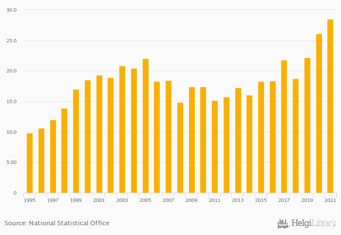 | Czechia | % | 7.54% | 9.40% | 8.17% | 9.42% | 10.9% | ||||||||||||||||