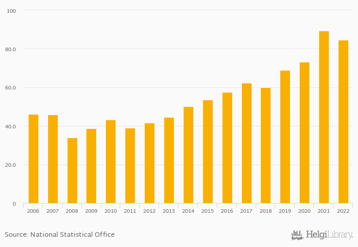 Historically, households' assets in investment funds in Austria reached an all time high of EUR 89.3 bil in 2021 and an all time low of EUR 33.9 bil in 2008. When compared to Austria's main peers, households' assets in investment funds in Germany amounted to EUR 952 bil, HUF 6,832 bil in Hungary, EUR 670 bil in Italy and CHF 374 bil in Switzerland in 2022.