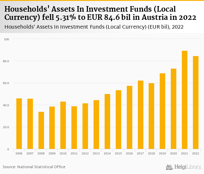 Households' assets in investment funds fell 5.31% to EUR 84.6 bil in Austria in 2022, according to OECD.
