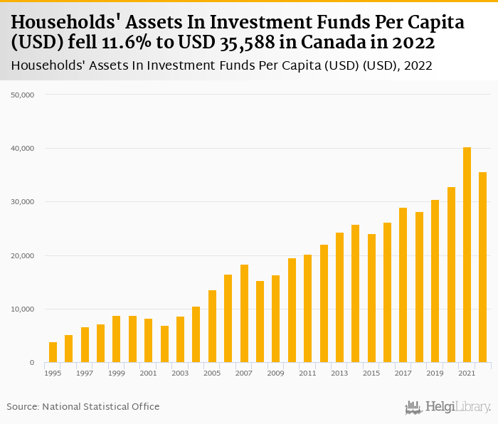 Households' assets in investment funds per capita fell 11.6% to USD 35,588 in Canada in 2022, according to OECD.