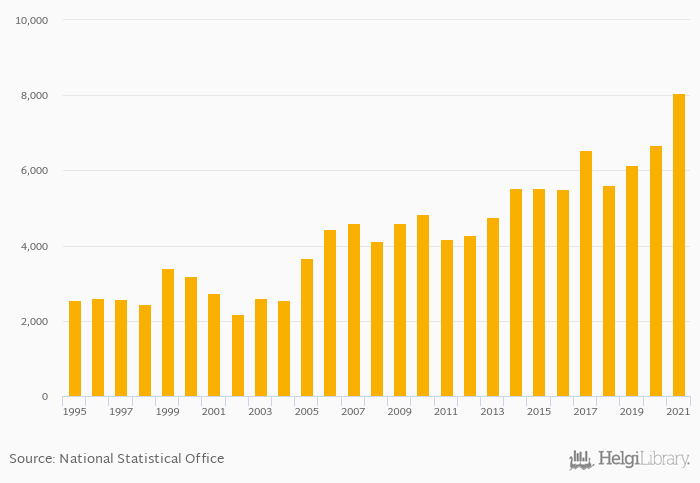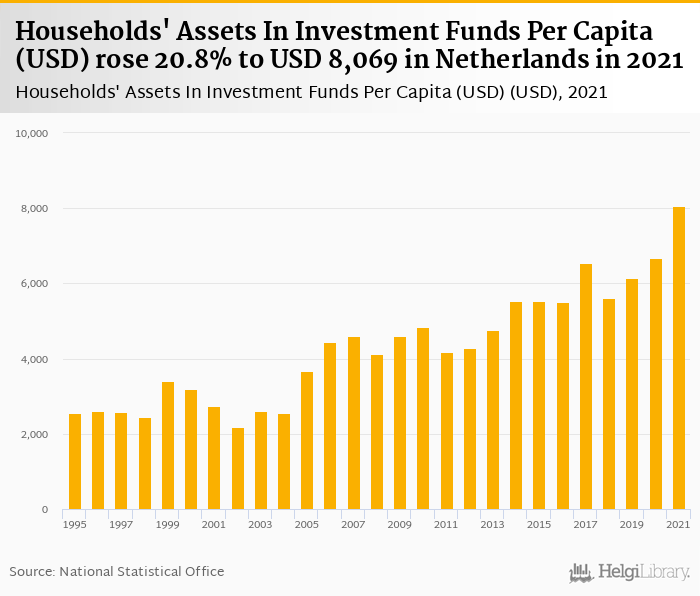 Households' assets in investment funds per capita rose 20.8% to USD 8,069 in Netherlands in 2021, according to OECD.