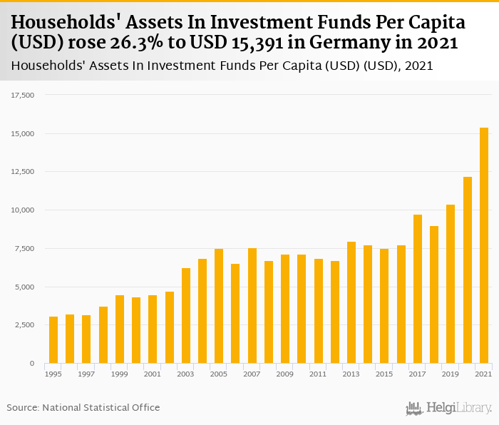Households' assets in investment funds per capita rose 26.3% to USD 15,391 in Germany in 2021, according to OECD.