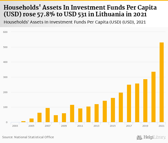 Households' assets in investment funds per capita rose 57.8% to USD 531 in Lithuania in 2021, according to OECD.
