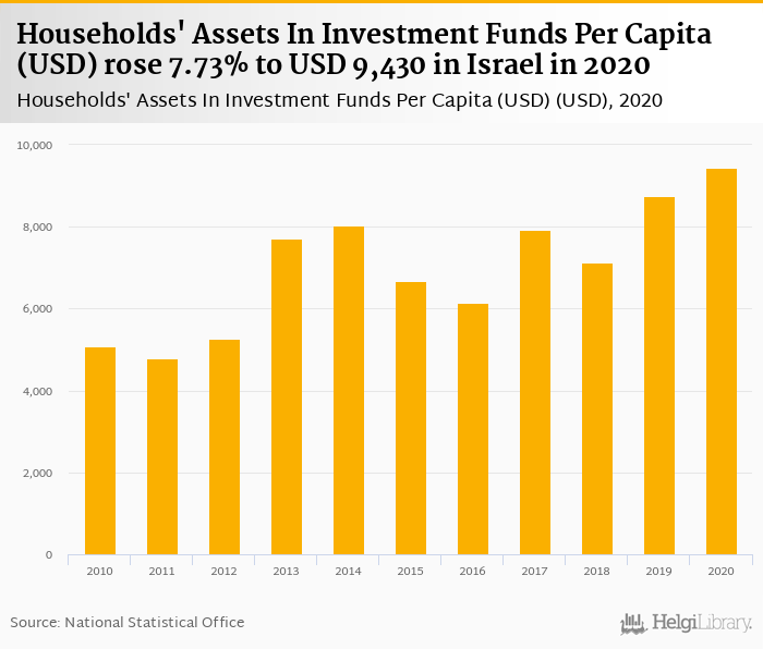 Households' assets in investment funds per capita rose 7.73% to USD 9,430 in Israel in 2020, according to OECD.