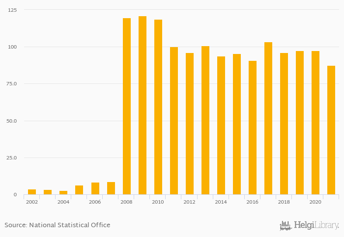 | South Korea | USD bil | ... | ... | ... | ... | ... | ... | 90.8 | 103 | 96.0 | 97.5 | 97.3 | ||||||||||