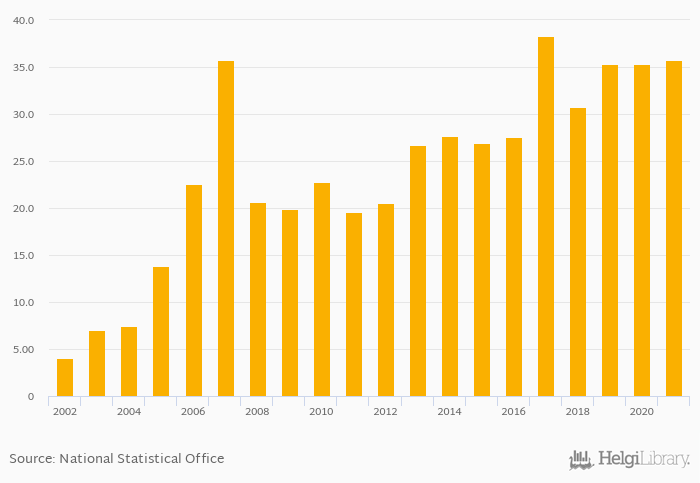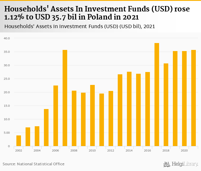 Households' assets in investment funds rose 1.12% to USD 35.7 bil in Poland in 2021, according to OECD.