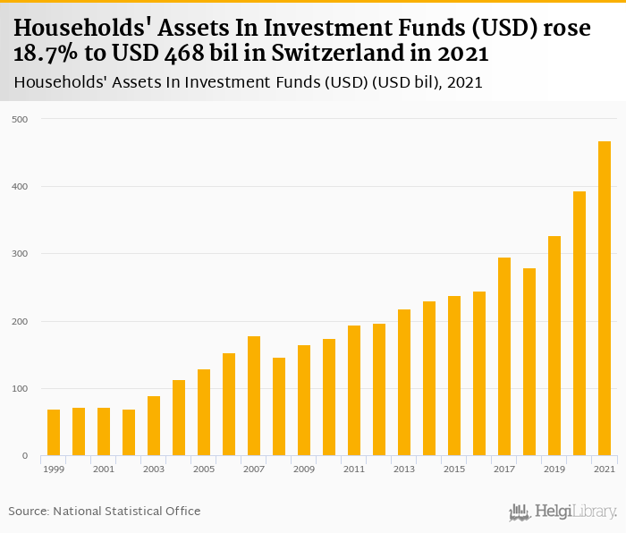 Households' assets in investment funds rose 18.7% to USD 468 bil in Switzerland in 2021, according to OECD.