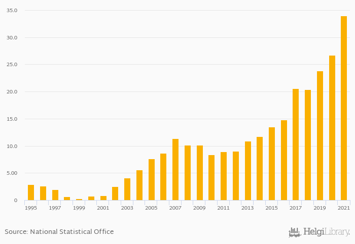 | Czechia | USD bil | 14.8 | 20.6 | 20.3 | 23.8 | 26.7 | ||||||||||||||||