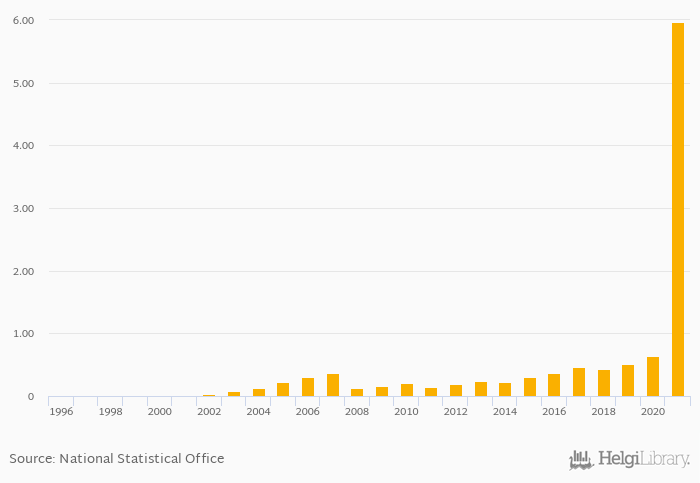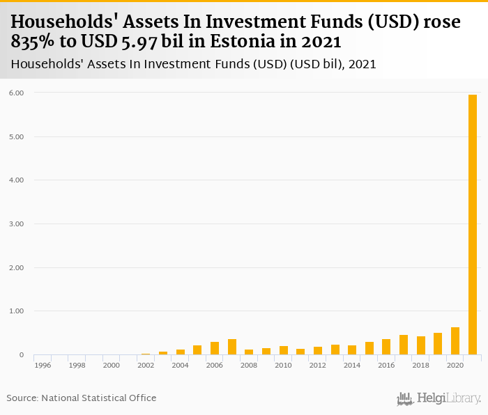 Households' assets in investment funds rose 835% to USD 5.97 bil in Estonia in 2021, according to OECD.