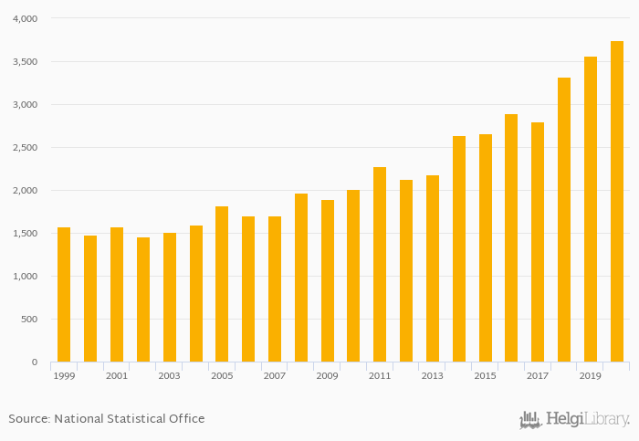 Historically, households' assets in land in Germany reached an all time high of EUR 3,740 bil in 2020 and an all time low of EUR 1,463 bil in 2002.