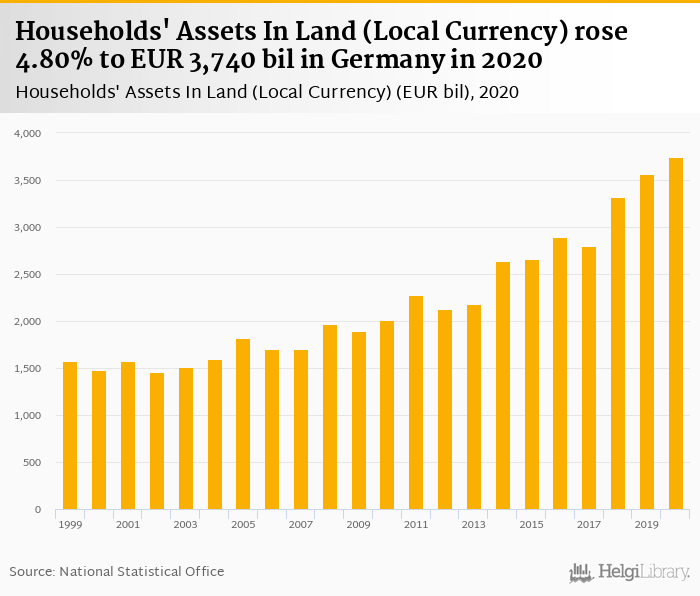 Households' assets in land rose 4.80% to EUR 3,740 bil in Germany in 2020, according to OECD.