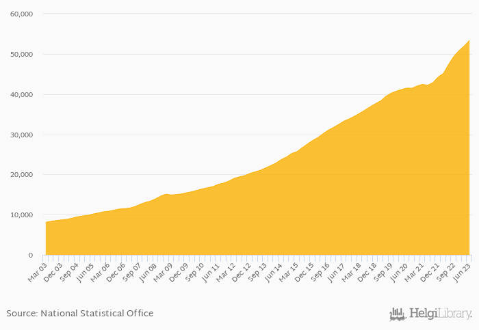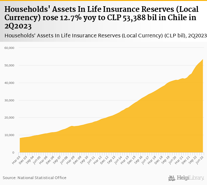 Households' assets in life insurance reserves rose 12.7% yoy to CLP 53,388 bil in Chile in 2Q2023, according to OECD. This is 2.70% more than in the previous quarter.