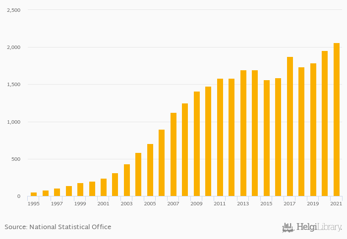 Historically, households' assets in life insurance reserves per capita in Slovenia reached an all time high of USD 2,062 in 2021 and an all time low of USD 51.4 in 1995.