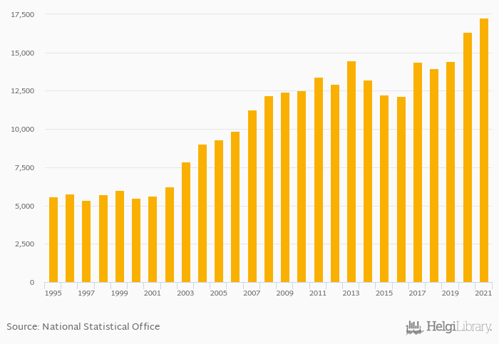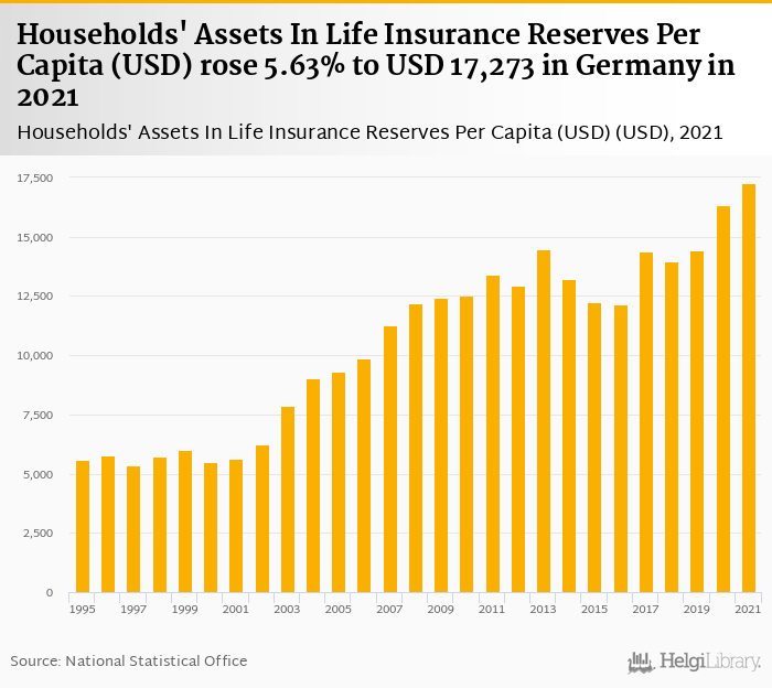 Households' assets in life insurance reserves per capita rose 5.63% to USD 17,273 in Germany in 2021, according to OECD.