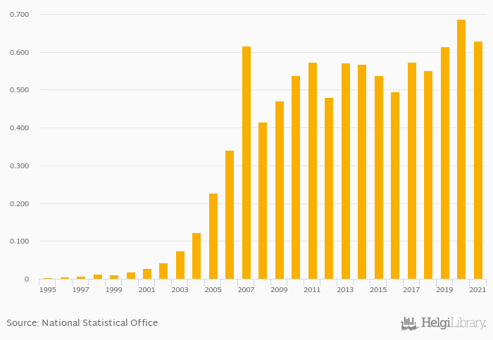 | Estonia | USD bil | 0.495 | 0.573 | 0.550 | 0.615 | 0.690 | ||||||||||||||||