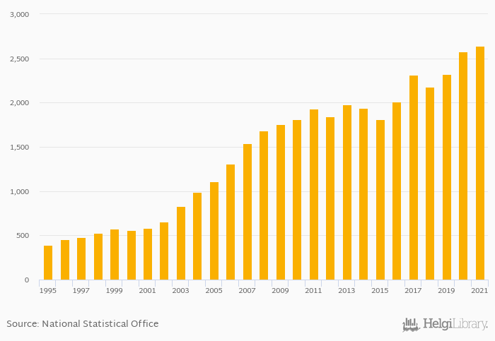 Historically, households' assets in life insurance in France reached an all time high of USD 2,638 bil in 2021 and an all time low of USD 394 bil in 1995. When compared to France's main peers, households' assets in life insurance in Belgium amounted to USD 235 bil, USD 1,380 bil in Germany, USD 1,130 bil in Italy and USD 222 bil in Spain in 2021.