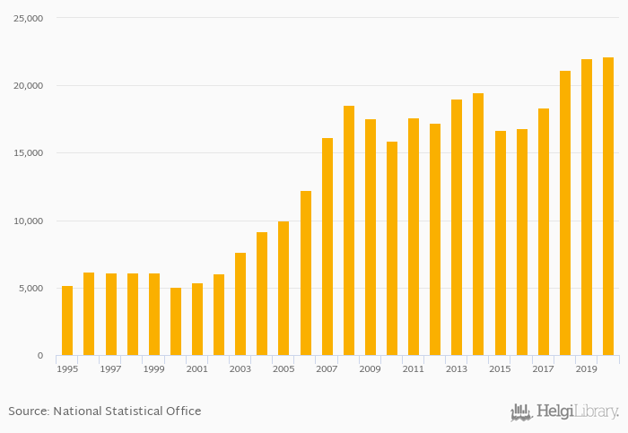 Historically, households' dwellings assets per capita in Estonia reached an all time high of USD 22,169 in 2020 and an all time low of USD 5,048 in 2000.