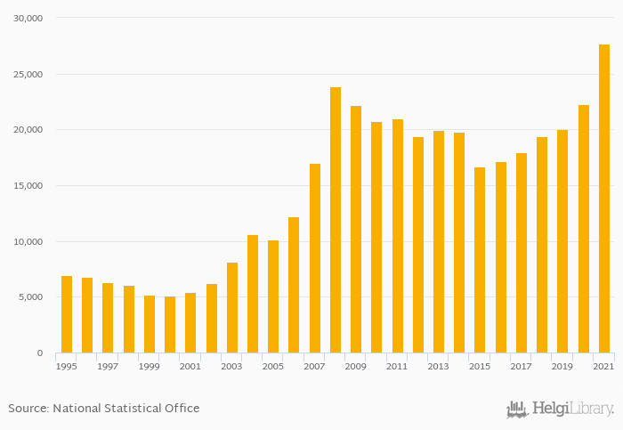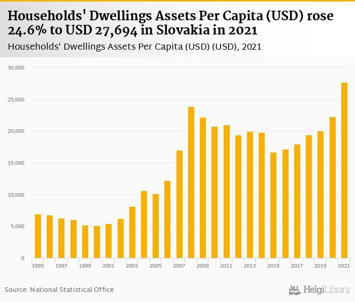 Households' dwellings assets per capita rose 24.6% to USD 27,694 in Slovakia in 2021, according to OECD.