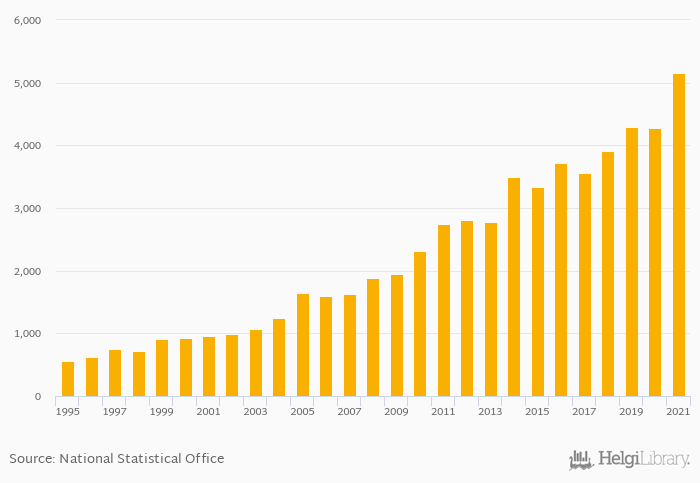 Historically, households' financial investments in Denmark reached an all time high of DKK 5,159 bil in 2021 and an all time low of DKK 552 bil in 1995. When compared to Denmark's main peers, households' financial investments in Germany amounted to EUR 3,221 bil, EUR 2,130 bil in Netherlands, NOK 2,440 bil in Norway and SEK 9,688 bil in Sweden in 2021.