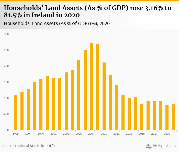 Households' land assets as of GDP rose 3.16% to 81.5% in Ireland in 2020, according to OECD.