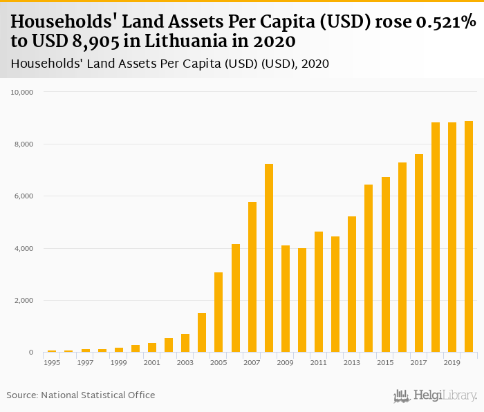 Households' land assets per capita rose 0.521% to USD 8,905 in Lithuania in 2020, according to OECD.