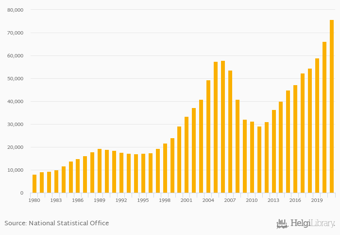 Households' land assets per capita rose 14.6% to USD 75,812 in the USA in 2021, according to OECD.