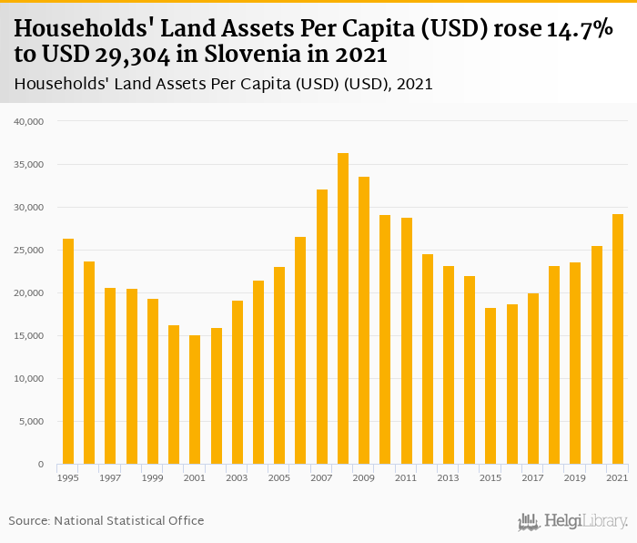 Households' land assets per capita rose 14.7% to USD 29,304 in Slovenia in 2021, according to OECD.