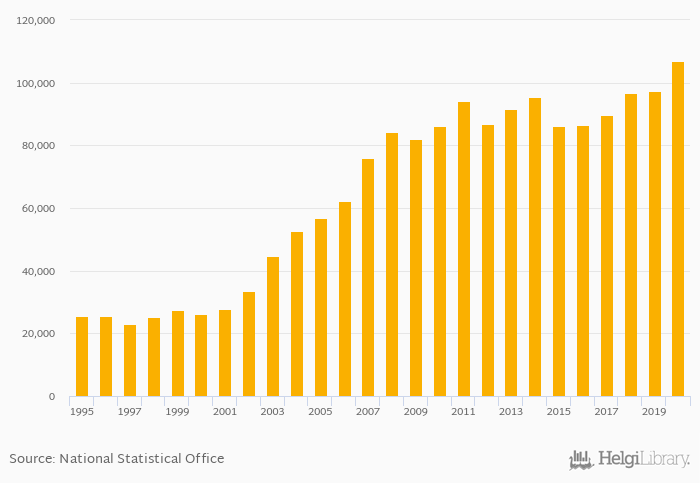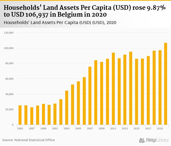 Households' land assets per capita rose 9.87% to USD 106,937 in Belgium in 2020, according to OECD.