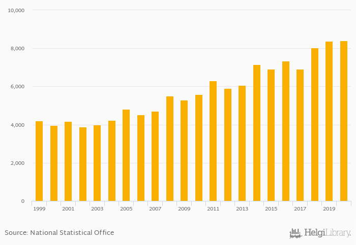 Historically, households' non-financial assets in Germany reached an all time high of EUR 8,393 bil in 2020 and an all time low of EUR 3,871 bil in 2002.