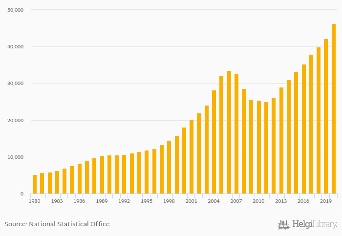 Households' non-financial assets rose 9.90% to USD 46,301 bil in the USA in 2020, according to OECD.