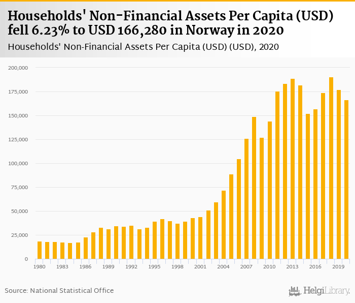 Households' non-financial assets per capita fell 6.23% to USD 166,280 in Norway in 2020, according to OECD.