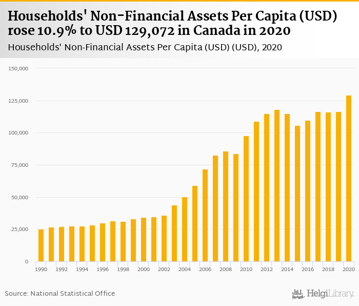 Households' non-financial assets per capita rose 10.9% to USD 129,072 in Canada in 2020, according to OECD.