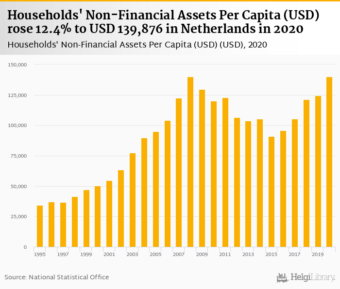 Households' non-financial assets per capita rose 12.4% to USD 139,876 in Netherlands in 2020, according to OECD.