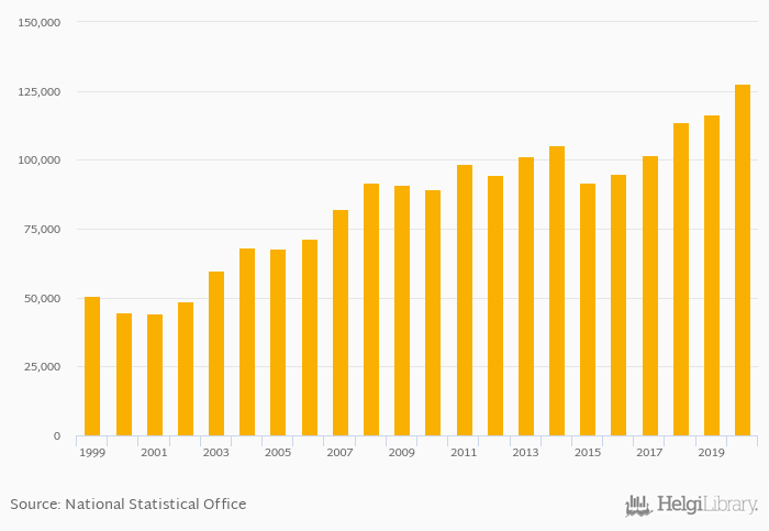 Historically, households' non-financial assets per capita in Germany reached an all time high of USD 127,818 in 2020 and an all time low of USD 44,437 in 2001.