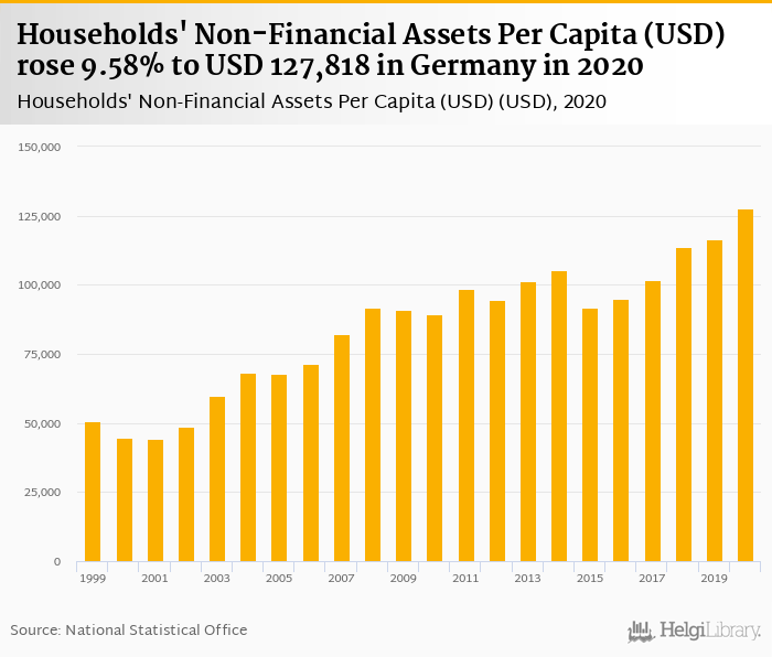 Households' non-financial assets per capita rose 9.58% to USD 127,818 in Germany in 2020, according to OECD.