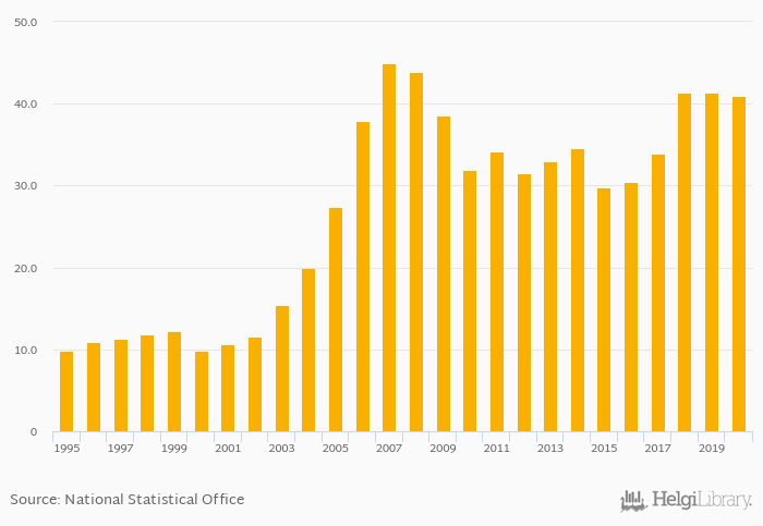 | Estonia | USD bil | 34.6 | 29.7 | 30.5 | 33.9 | 41.4 | ||||||||||||||||