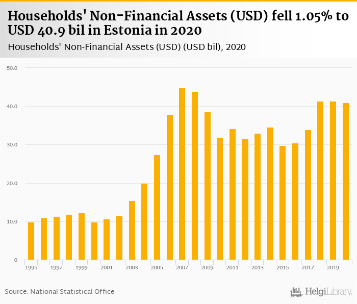 Households' non-financial assets fell 1.05% to USD 40.9 bil in Estonia in 2020, according to OECD.