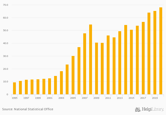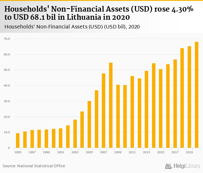 Households' non-financial assets rose 4.30% to USD 68.1 bil in Lithuania in 2020, according to OECD.