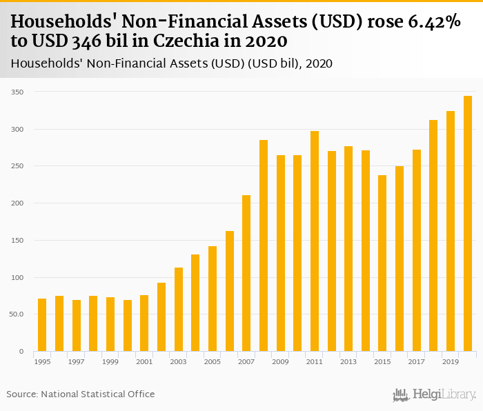 Households' non-financial assets rose 6.42% to USD 346 bil in Czechia in 2020, according to OECD.
